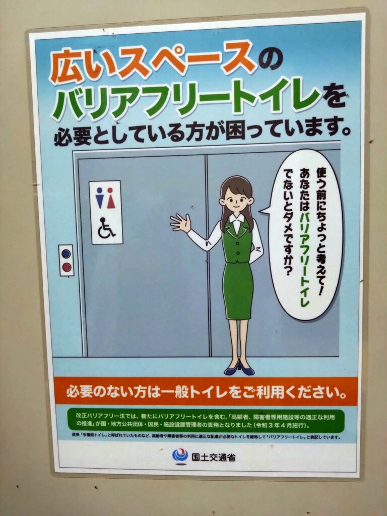 普通のトイレを使用できる方は多目的トイレ(障がい者優先トイレ)を譲って下さいm(__)m